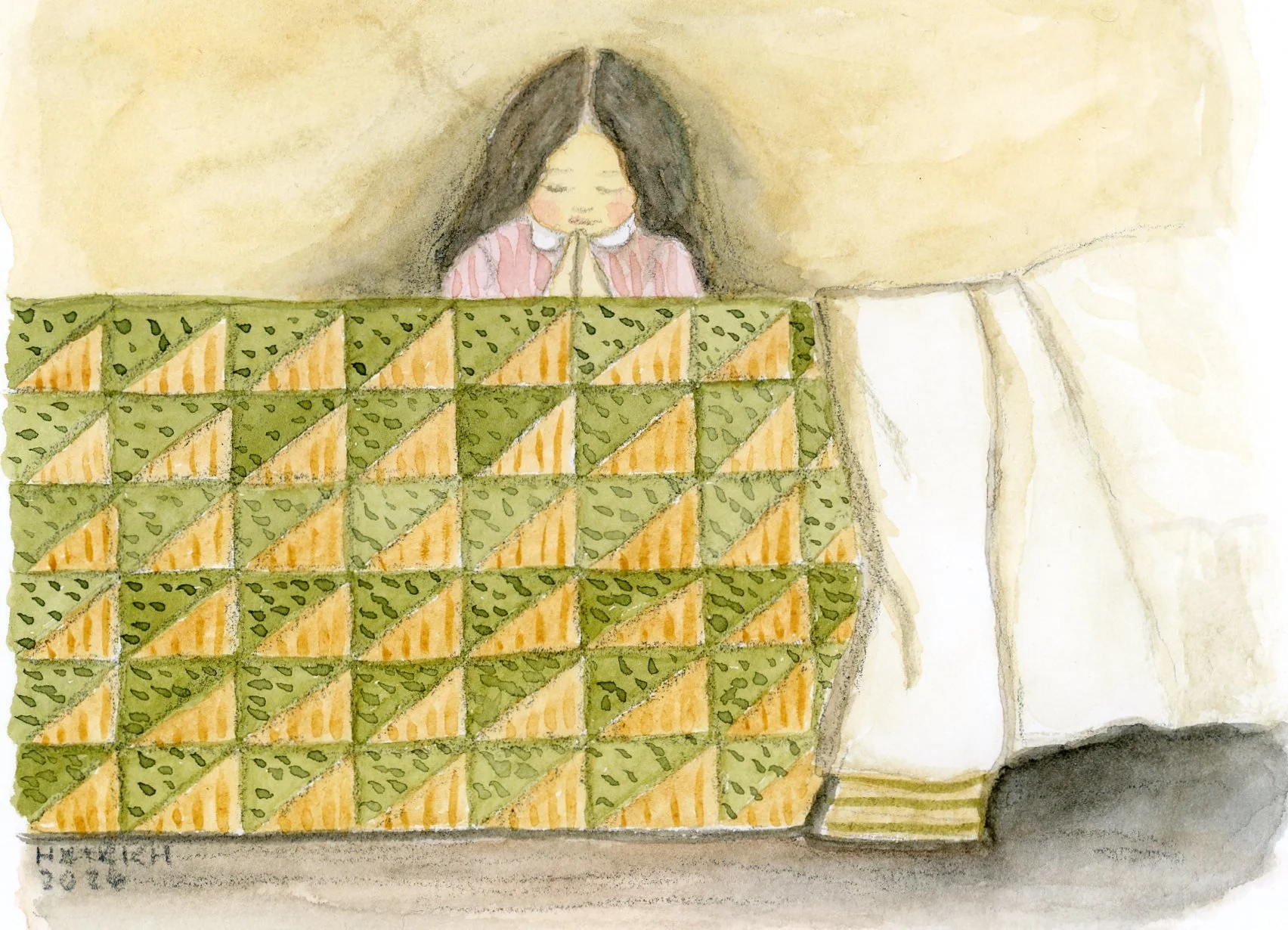 So while I am working through that I thought I would show you what I am working on currently. There’s two different ways I love to work. One is drawing in pencil and adding watercolor on top. This gives a nice vintage art style like old children’s books that I love. So here’s some samples of work I’ve done in 2026 with that medium.